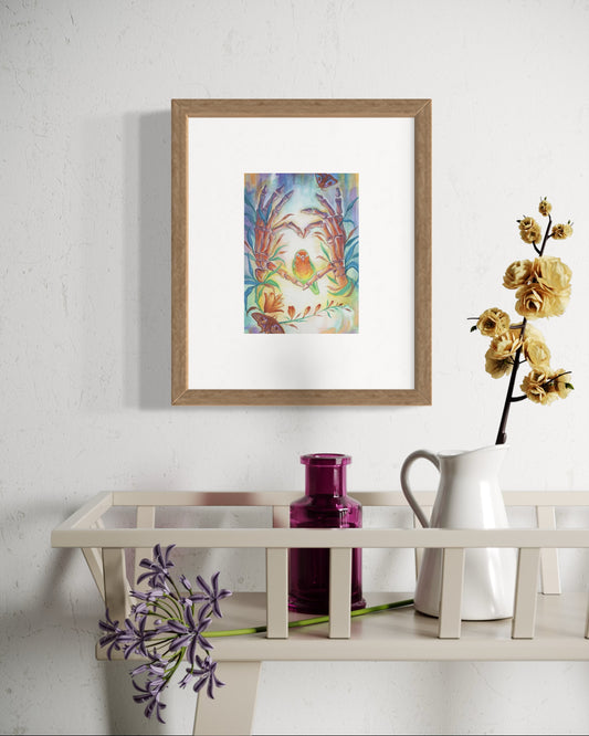Heart & Bird – Watercolor Art Print | Surreal Anatomical Heart Painting with Nature Elements | Available in 5x7, 8x10, 11x14