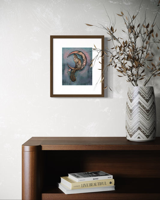 Lunar Comet Moth– Digital Art Print | Mystical Insect & Crescent Moon Wall Decor | Available in 5x7, 8x10, 11x14
