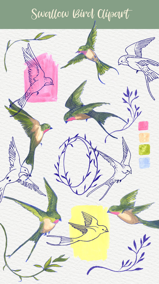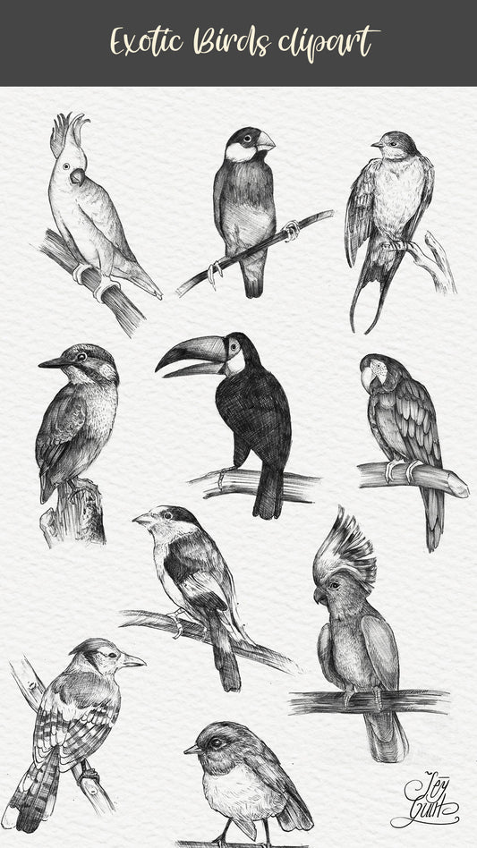 Exotic Birds Illustration, 10 PNG Hand drawn birds doodle clipart