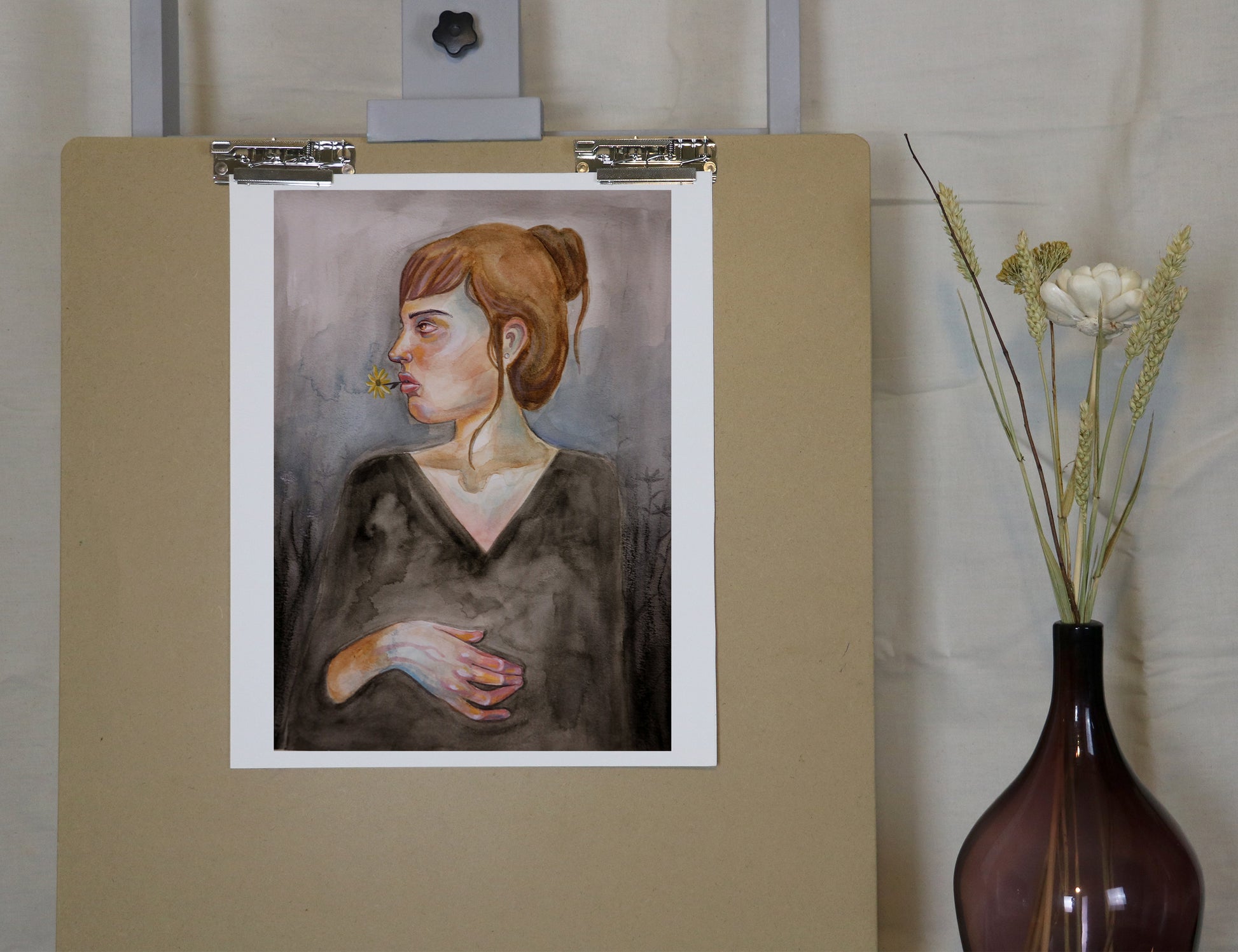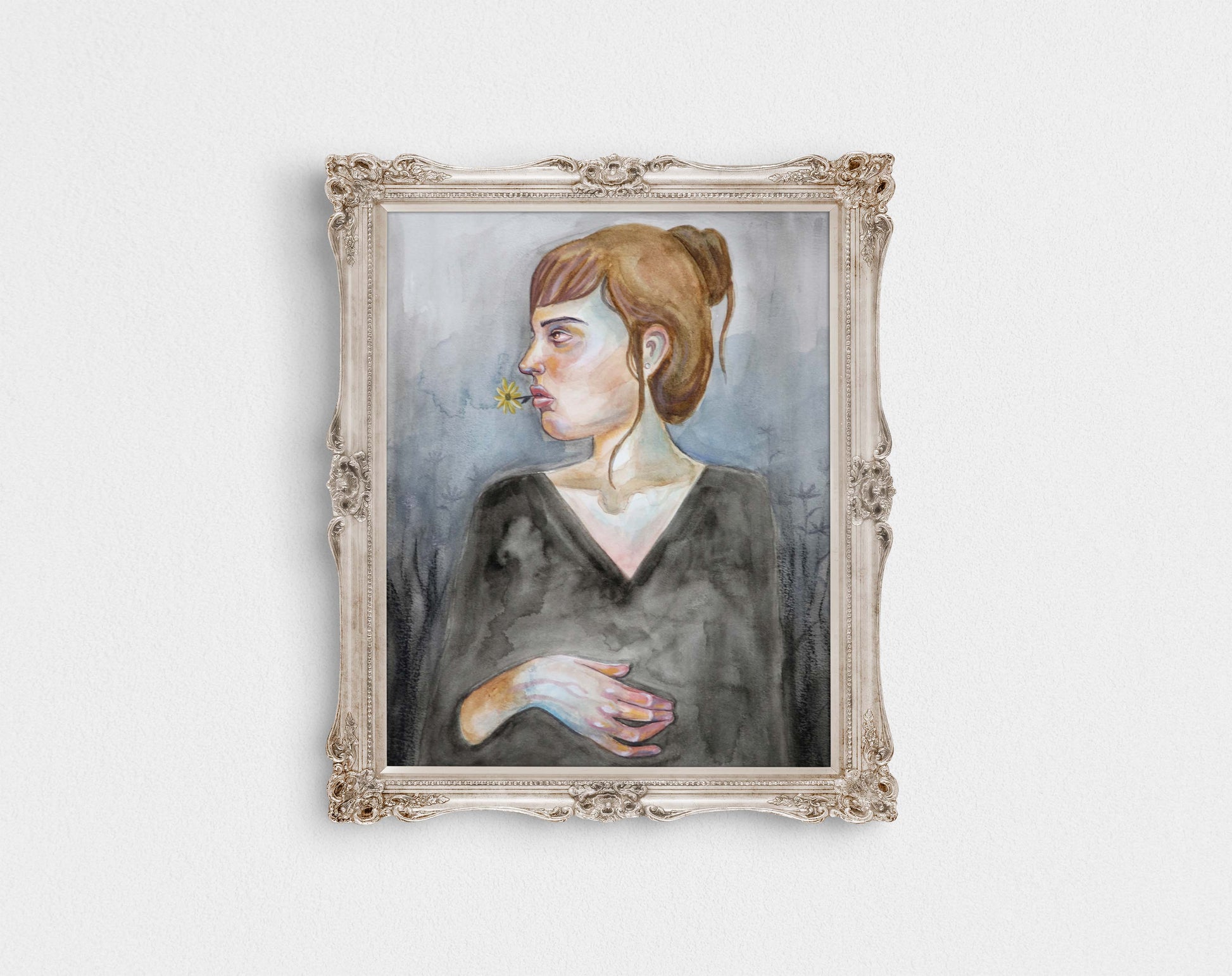 Original mix media woman portrait on watercolour painting 11x14,